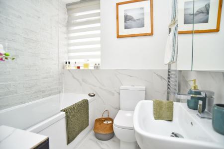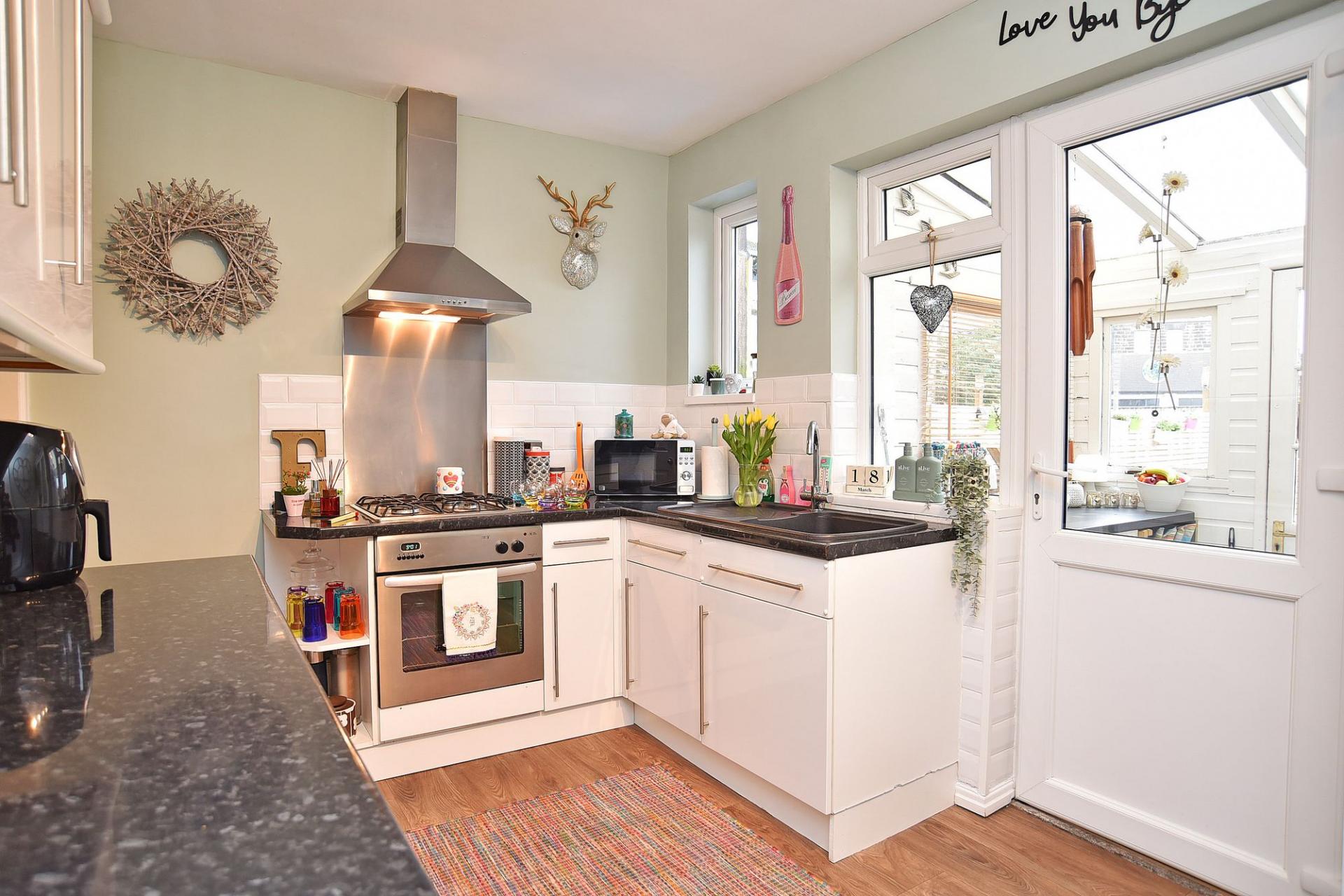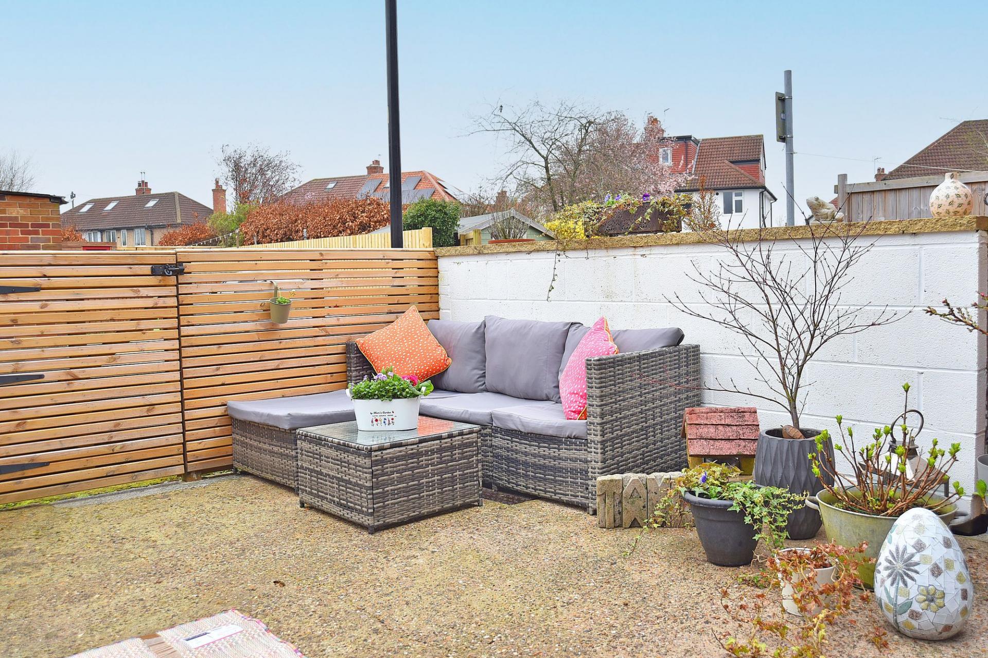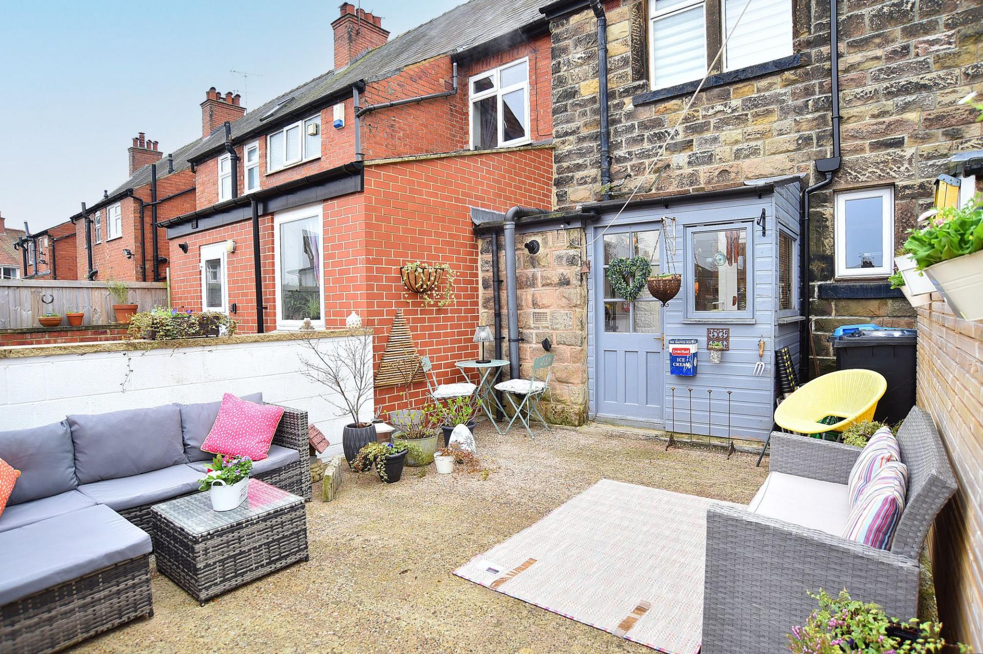 Externally, the property benefits from an attractive courtyard-style rear garden, offering a pleasant and low-maintenance outdoor area.