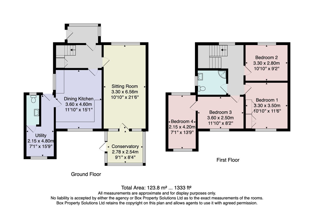 There are four bedrooms on the first floor. The main bedroom has fitted wardrobes. Access to the fourth bedroom is via bedroom 3.