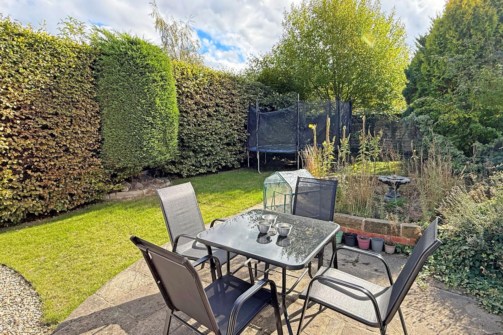 OUTSIDE There is a superb south-facing rear garden with lawn, patios and planted borders. A drive provides parking and leads to the integral garage with up-and-over door, power and light and separate access from the kitchen.