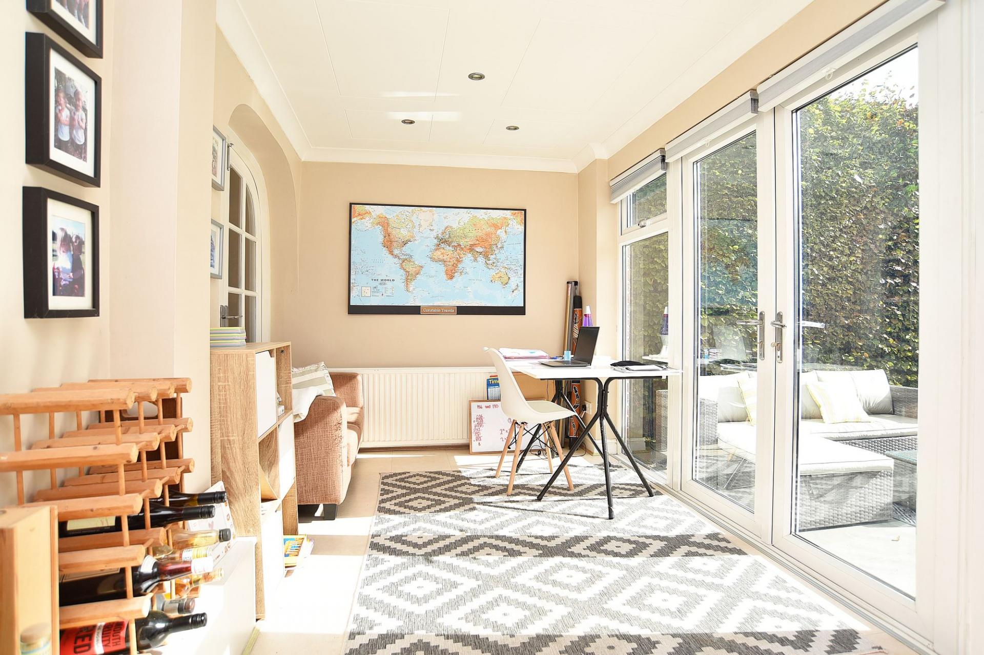 A bright and airy space with double doors opening onto the patio and garden. Ideal as a playroom or additional sitting area.