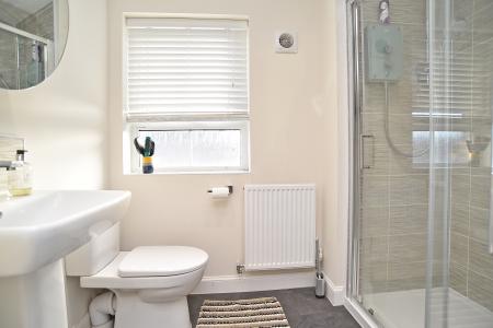 In brief, the accommodation comprises an entrance hall with guest WC, a spacious living room, and an impressive open-plan dining kitchen with patio doors opening onto the garden. Upstairs, there is a main bedroom with en-suite shower room, two further good-sized bedrooms and a modern house bathroom.