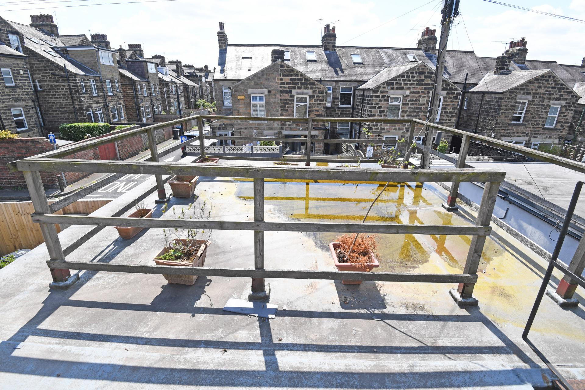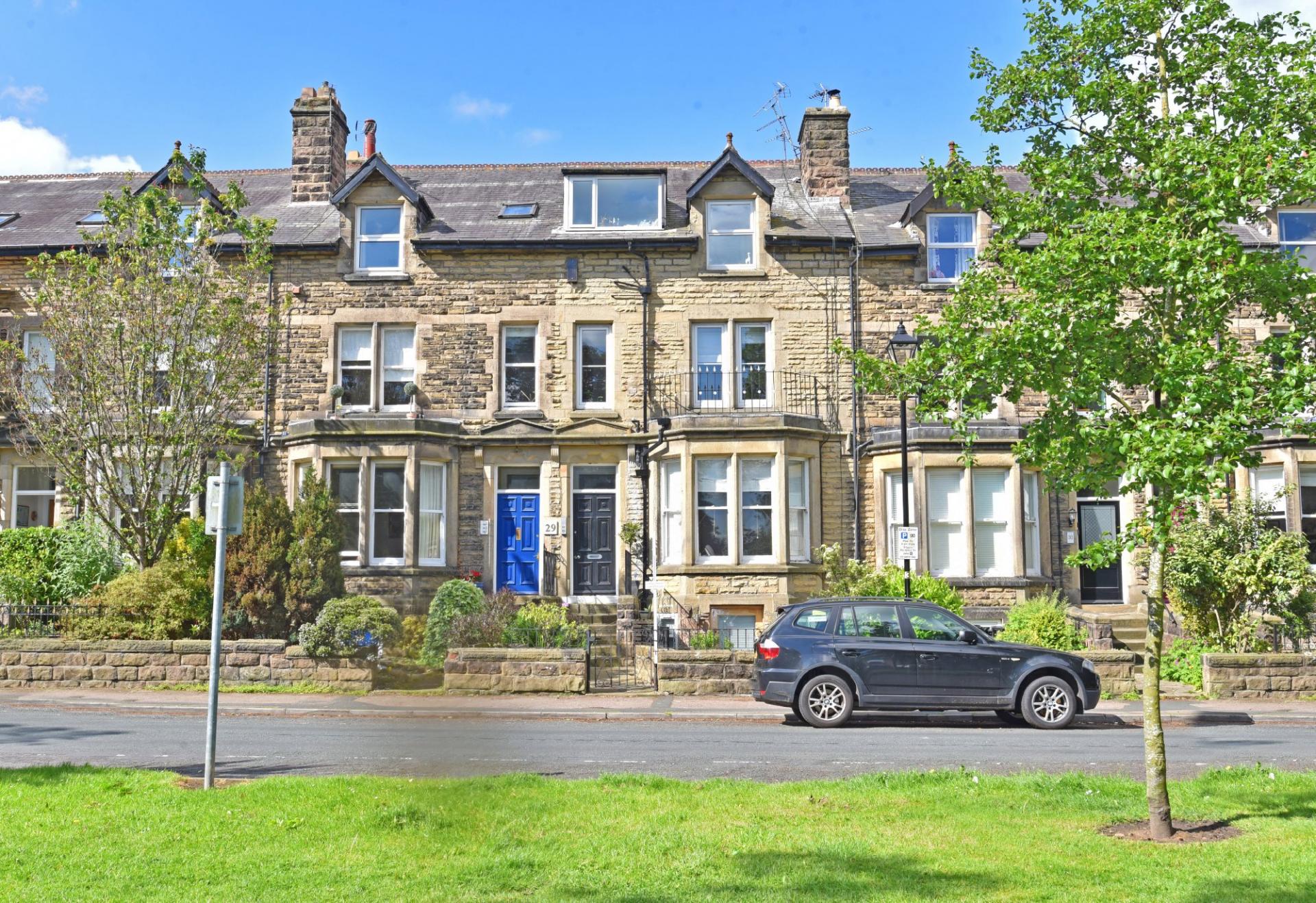 A beautifully presented two bedroomed garden apartment with private entrance and double garage with roof terrace above, situated in this popular location on the edge of the famous Harrogate Stray and just a short walk from the town Centre.