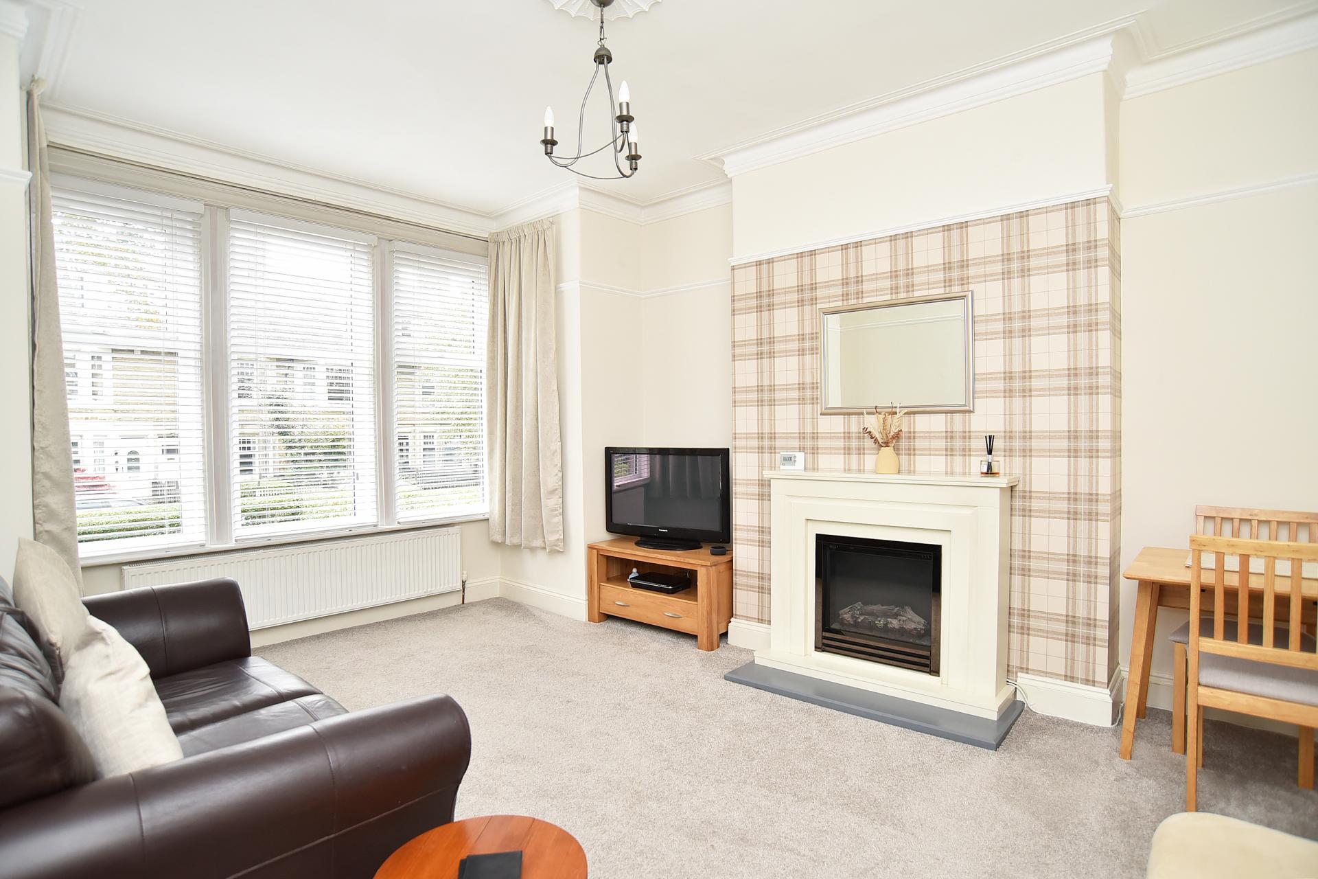 A spacious reception room with bay window to front and attractive fireplace with electric fire.