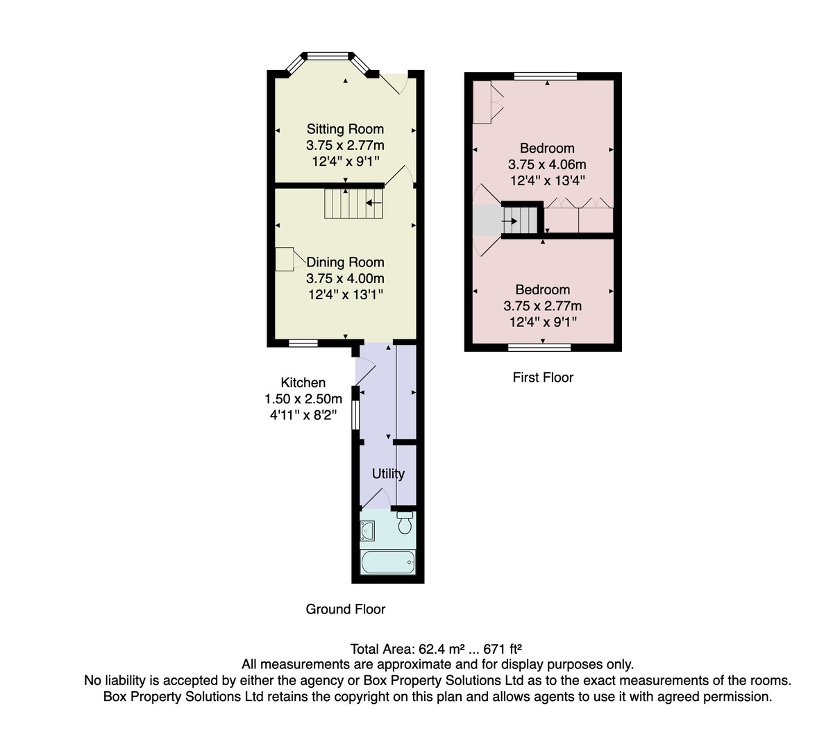 The property offers spacious accommodation arranged over two floors. On the ground floor there is a sitting room, dining room, kitchen, utility and bathroom, while the first floor provides two good-sized bedrooms. Outside, there is an enclosed private courtyard garden providing a pleasant sitting area.