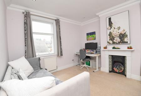 A further reception room with bay window and feature fireplace with living-flame gas fire.