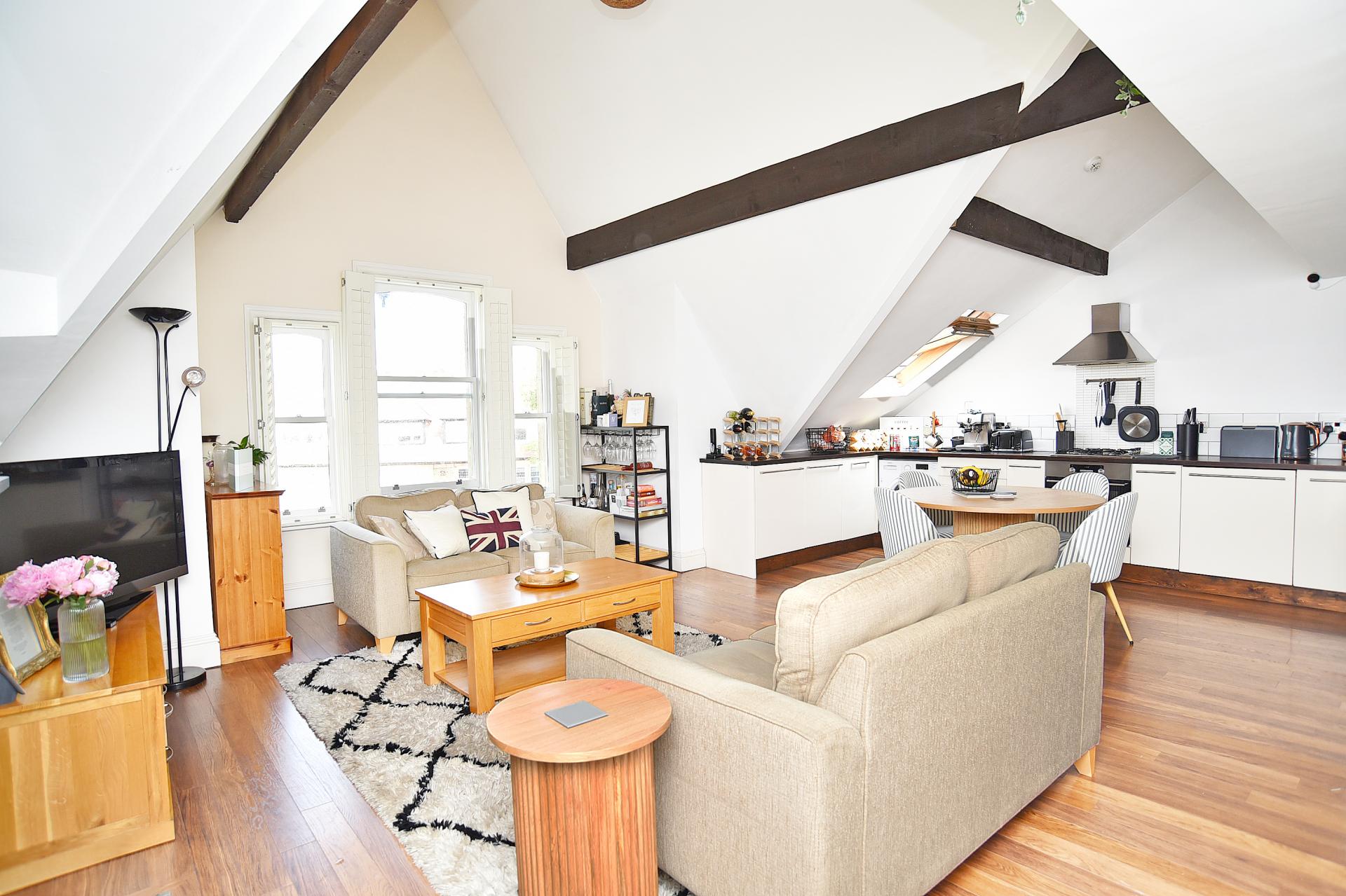A spacious and beautifully presented two-bedroom duplex apartment with car parking space, situated in the heart of Harrogate town centre. This excellent property is arranged over the top floors of this attractive period building. The accommodation comprises a stunning open-plan living area and kitchen with vaulted ceilings and modern fitted kitchen. There's also a large modern bathroom and the main bedroom. A spiral staircase leads to the top floor, where there is the second bedroom with en-suite shower room. The property has the unusual benefit of an allocated parking space situated at the rear of the building.