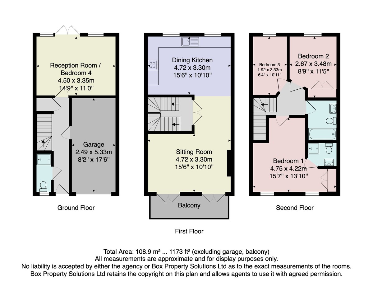 ACCOMMODATION Fronted by a block paved parking space the property comprises, in brief; reception hall with ground floor shower room and internal access to integral garage and utility area. The hallway leads to a reception room which could be used as an office/bedroom with heated tiled floor and double doors onto enclosed patio garden. Stairs to first floor landing with two double doors opening onto a light and airy open plan living area with south facing balcony overlooking communal gardens. Feature pale wooden floors, marble hearth and log burner. Stunning dining kitchen area with granite effect worktops and a range of integrated appliances. Stairs to second floor landing and stylish main bathroom with 3 piece white suite, master bedroom with fitted wardrobes and en-suite shower room, second bedroom with fitted wardrobes, and a further bedroom.