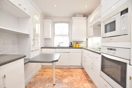 The accommodation further includes a comfortable double bedroom with built-in storage, with free-standing wardrobes available by separate negotiation. The stylish shower room has been updated and is finished with floor-to-ceiling tiling and a large walk-in shower, providing a contemporary and practical space.