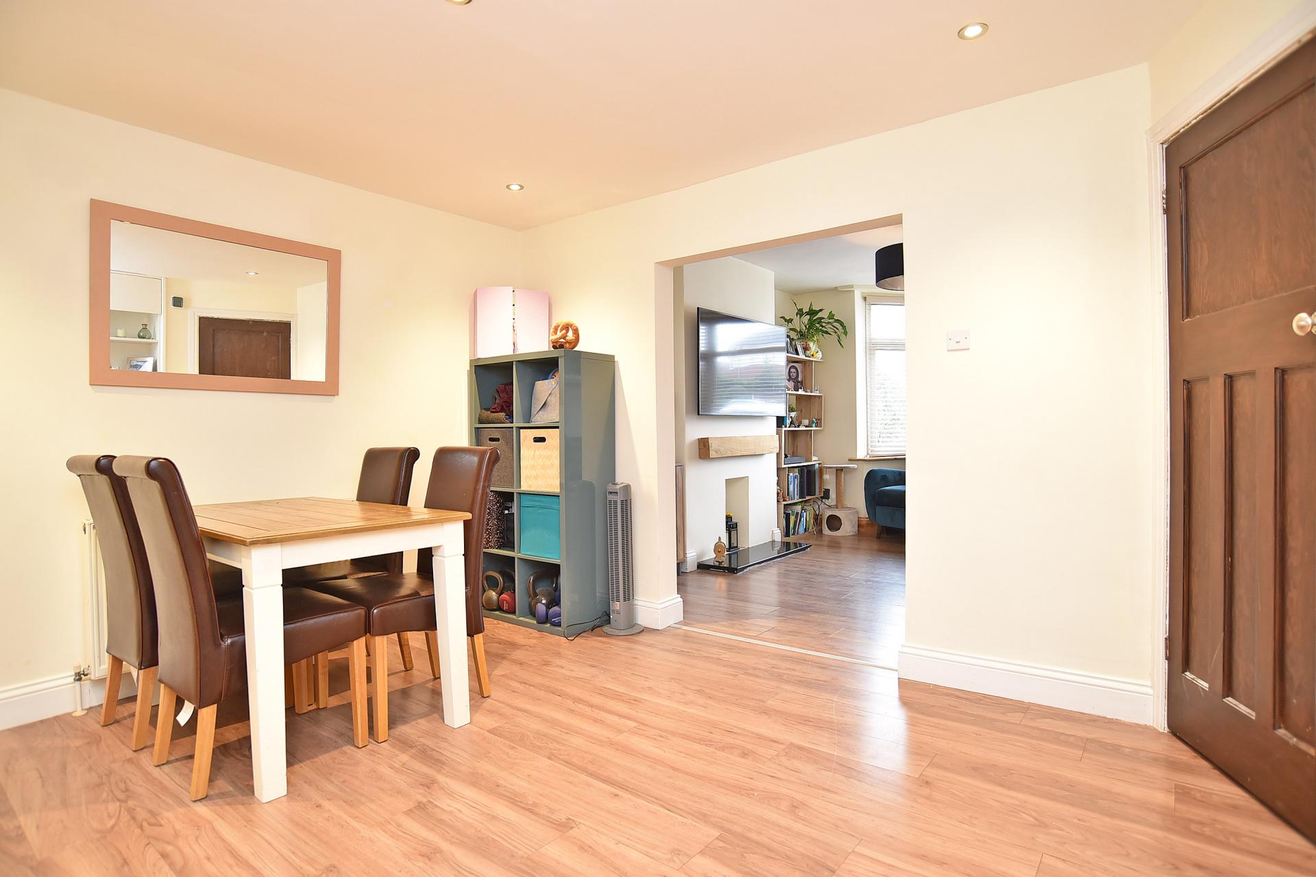 A further reception room with space for a dining area. Fitted cupboards and shelving.