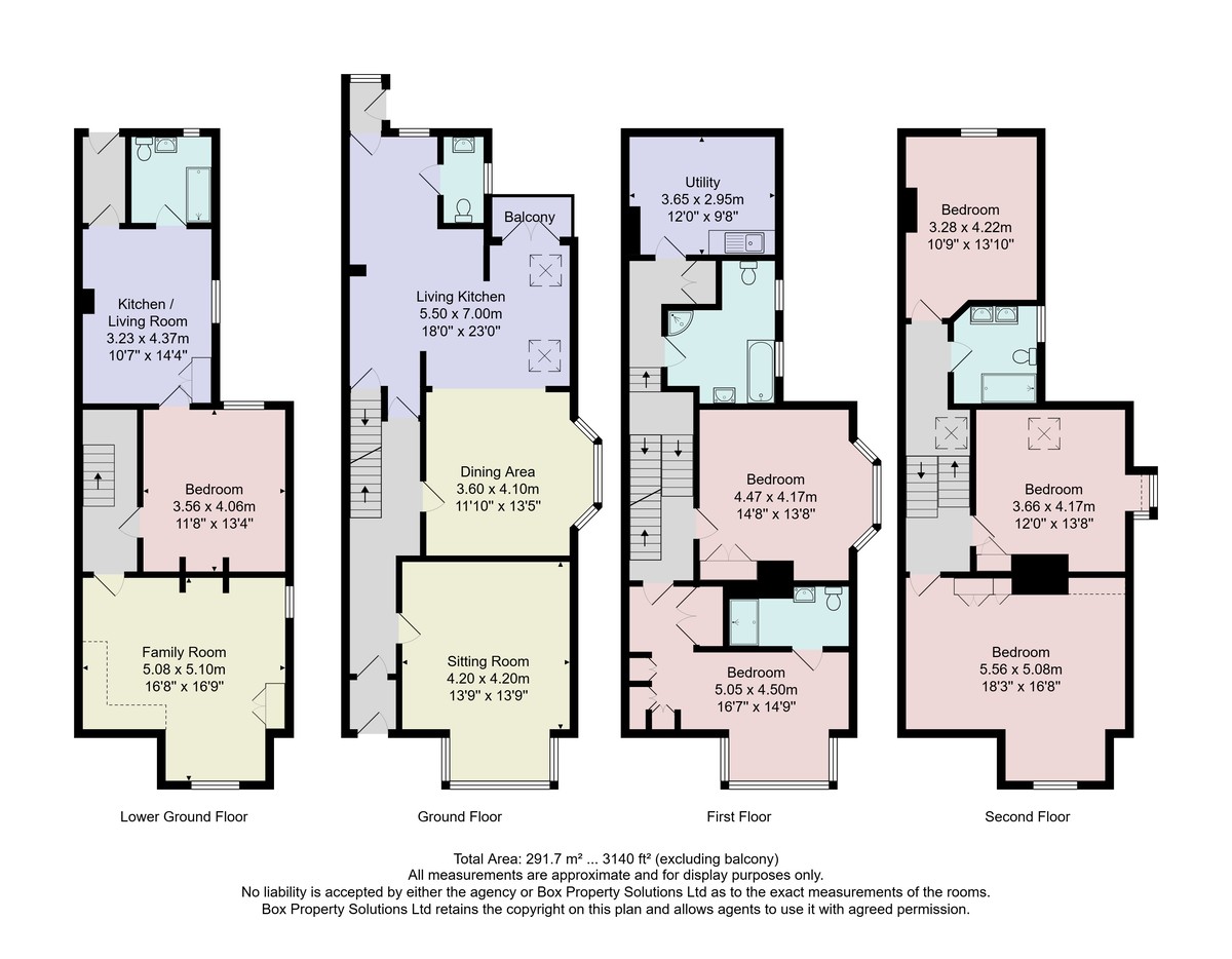 This impressive period property provides particularly spacious accommodation over four levels. On the ground floor there is an attractive hallway with wooden flooring and original staircase leading to the upper floors, a spacious sitting room with wood-burning stove and stunning open- plan kitchen and living area at the rear, with glazed doors leading to a balcony and a downstairs WC. Upstairs, there are five good-sized bedrooms, two bathrooms, en-suite and laundry room that could be repurposed as an additional bedroom if required.