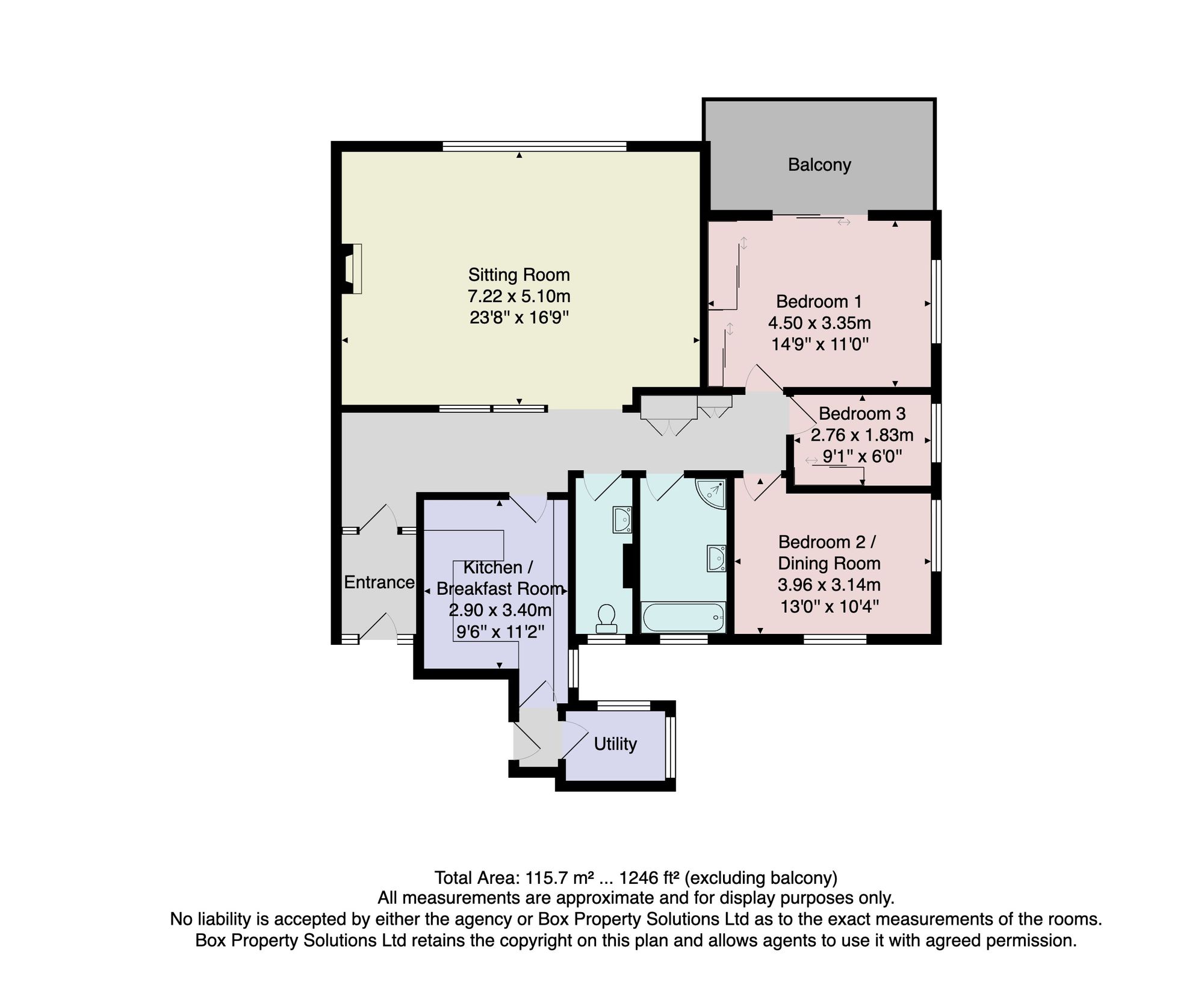 There are three bedrooms offering flexibility for use as additional reception space, home office or dining room. The principal bedroom enjoys direct access to the balcony. The apartment also has a fully tiled bathroom with separate shower, and a separate WC.