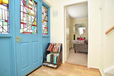Double-glazed entrance door, central heating radiator and staircase to first floor.