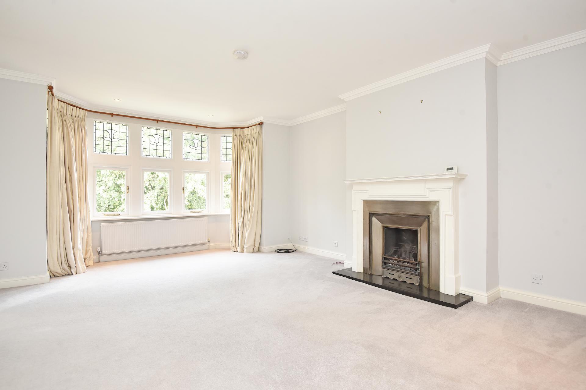 Large bay window to the front overlooking the Valley Gardens. Two central heating radiators and ornate ceiling cornice. Television and telephone points. Feature fireplace with marble hearth, brushed chrome-effect insert and ornate wood surround. Recessed spotlighting to ceiling.