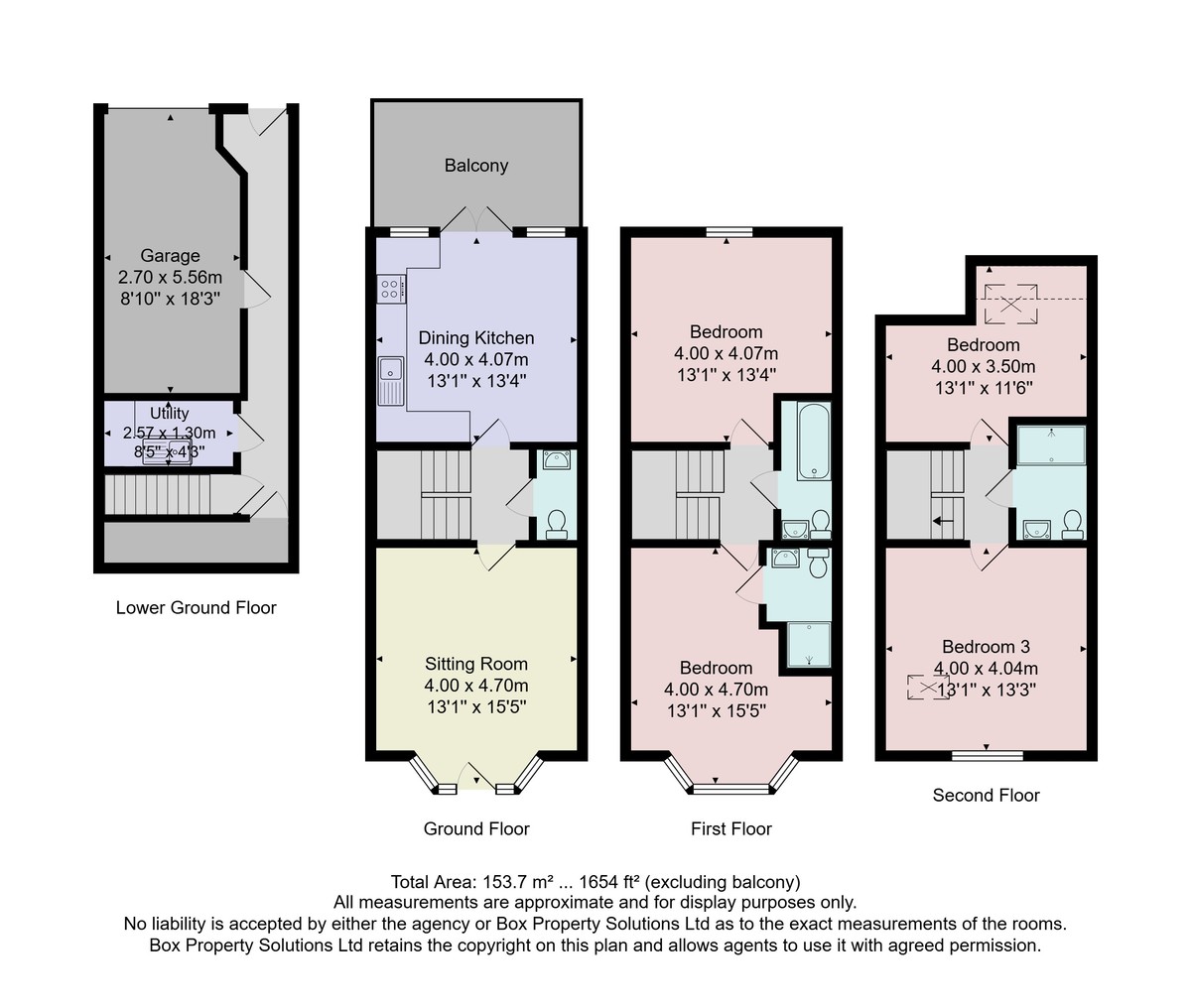 The property offers four well-proportioned double bedrooms arranged across the upper floors, complemented by a house bathroom, a shower room, and an en-suite. Additional features include a useful utility area, an integral garage, and off-street parking for two vehicles.