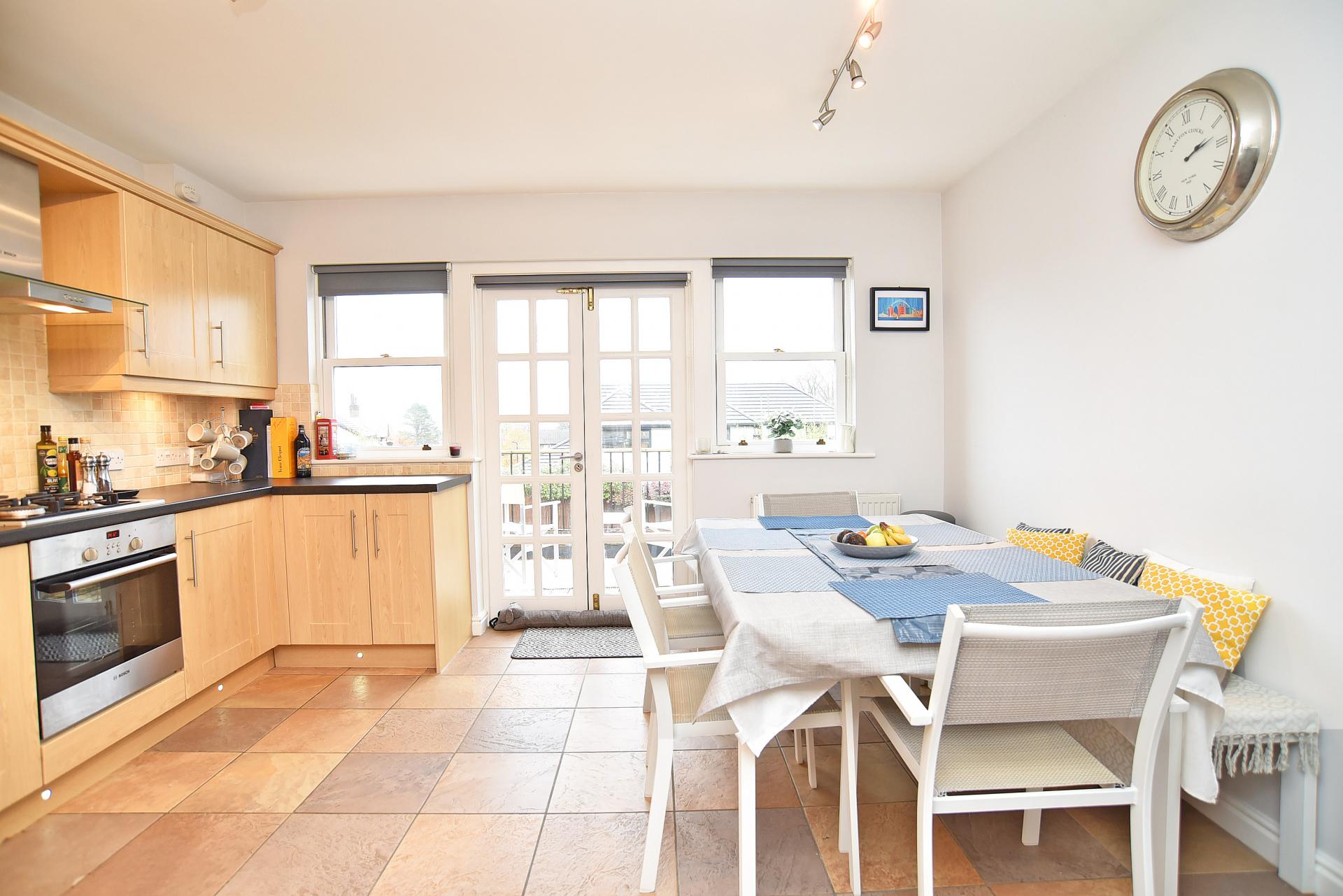 A superb open-plan kitchen and dining area fitted with a range of modern units, integrated appliances including electric oven, gas hob and dishwasher. Double doors open onto a fantastic balcony overlooking the rear aspect.