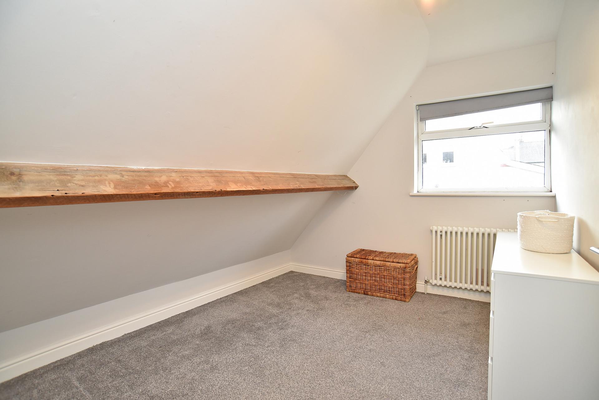 A good-sized double bedroom with access to eaves storage.