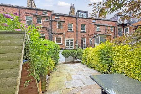 To the rear a private garden has been finished to a very similar standard. An entirely paved garden split on multiple levels provides a low- maintenance, versatile space for alfresco dining, outdoor entertaining, or enjoying the morning sun.