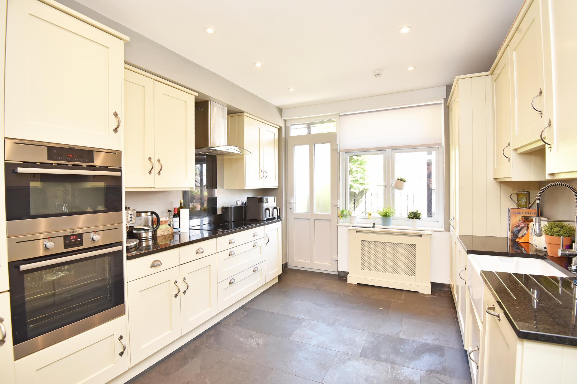 With a range of fitted units with granite worktops. Electric hob, double oven, integrated fridge / freezer, dishwasher and washing machine. Tiled flooring with under-floor heating.