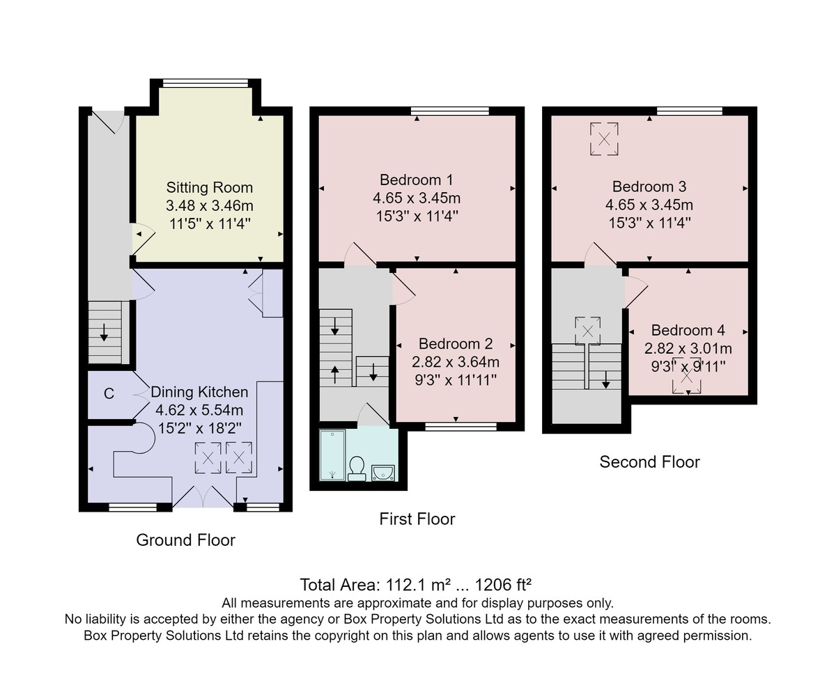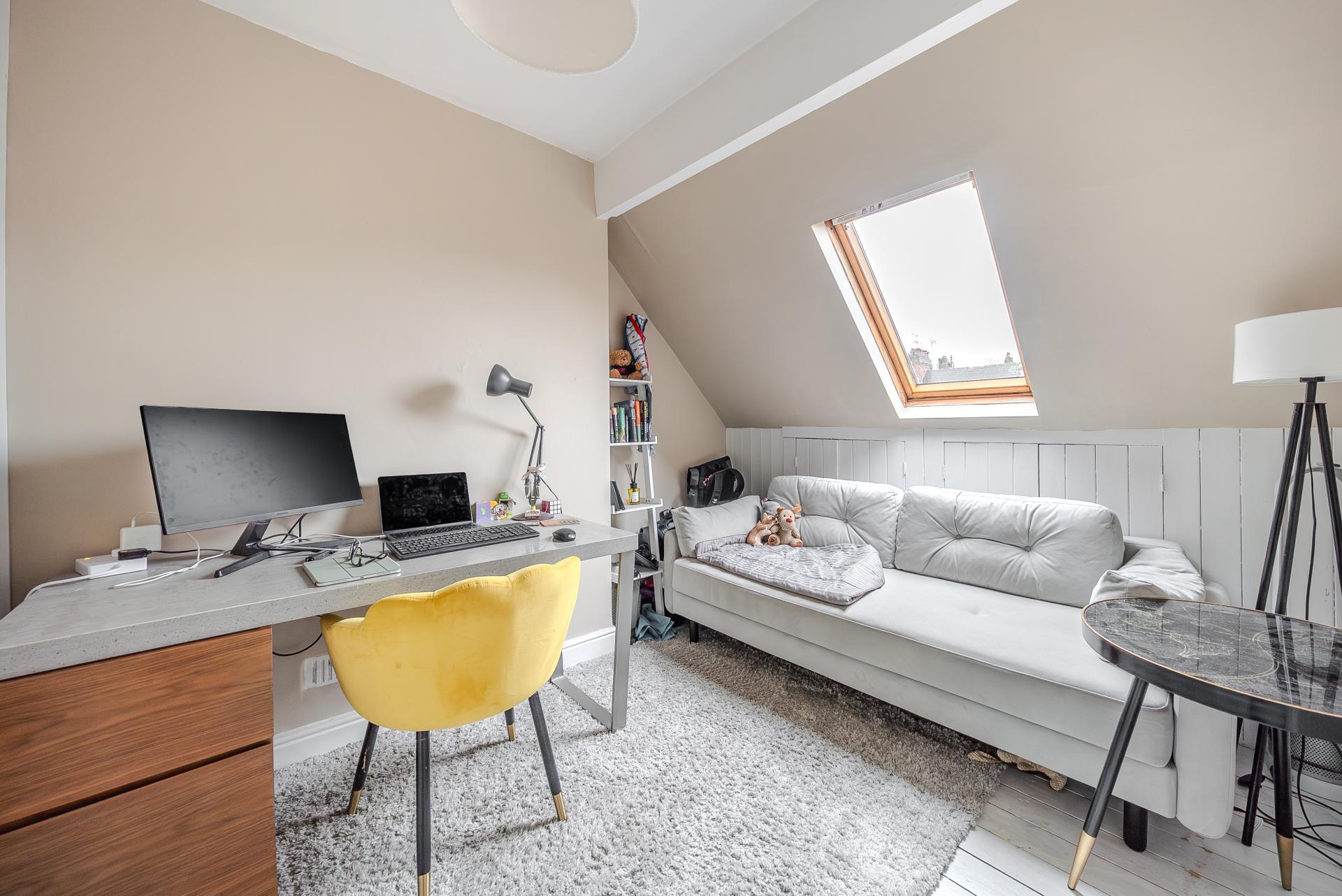 The first floor offers two well-proportioned bedrooms and a modern shower room with underfloor heating, while the second floor provides two further generous bedrooms, ideal for family living or home working.