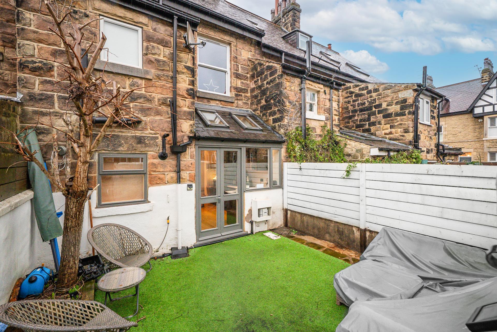 To the rear is an attractive and private courtyard garden with artificial grass, offering a stylish, low-maintenance outdoor space.