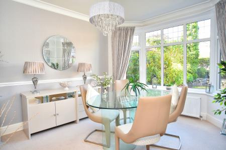 A spacious reception room with bay window overlooking the garden.