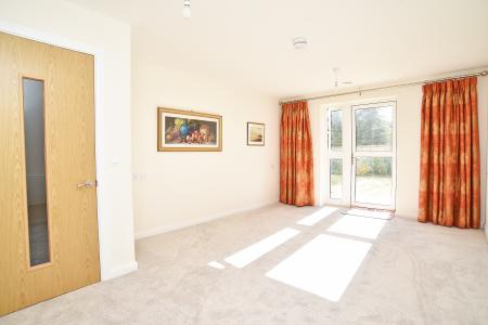 A spacious reception room with space for sitting and dining areas. Glazed door provides direct access to the attractive communal gardens. Private patio area outside the living room.
