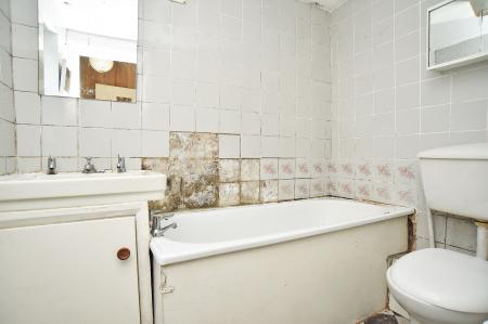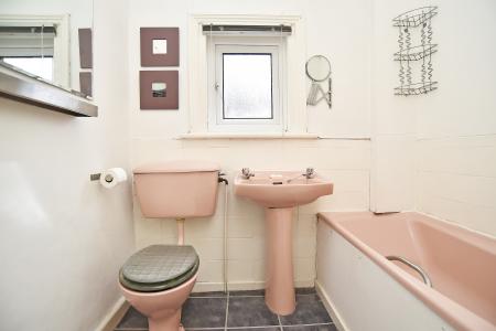 Panelled bath, low-flush WC and washbasin. Window to side elevation.