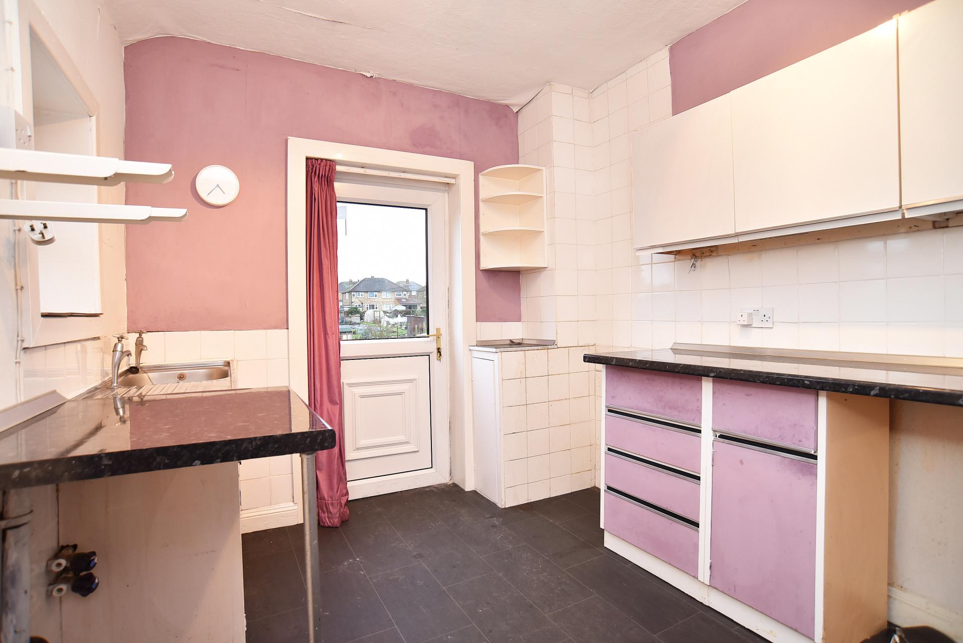 Previously a kitchen complete with wall and base units having working services and inset stainless steel sink. Window to side elevation. Door to rear onto flat roof.