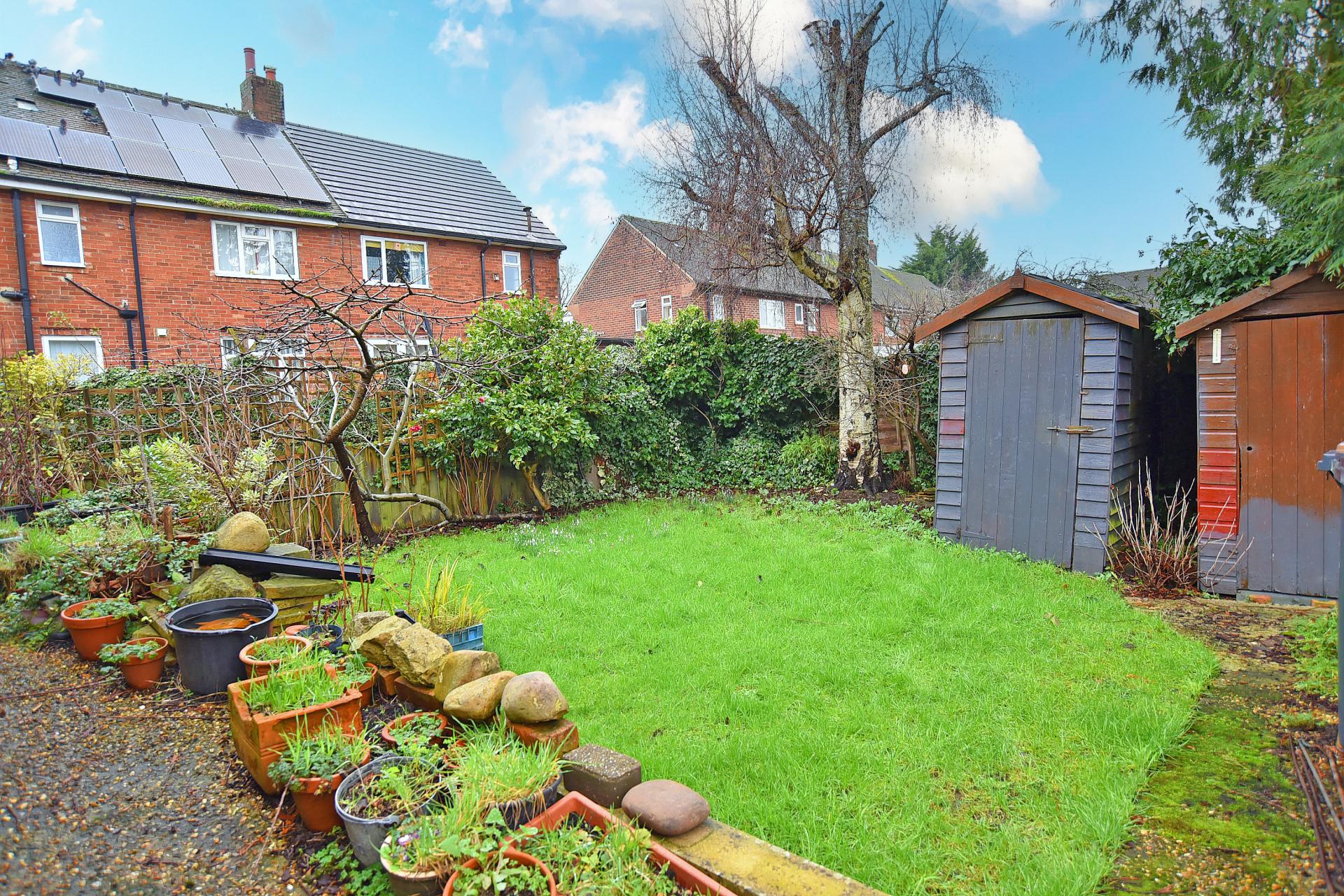OUTSIDE To the front of the property there is a driveway providing off-road parking. To the rear, the property enjoys a lawned garden with planted borders, together with timber garden sheds, providing excellent outdoor storage and space for sitting and entertaining.