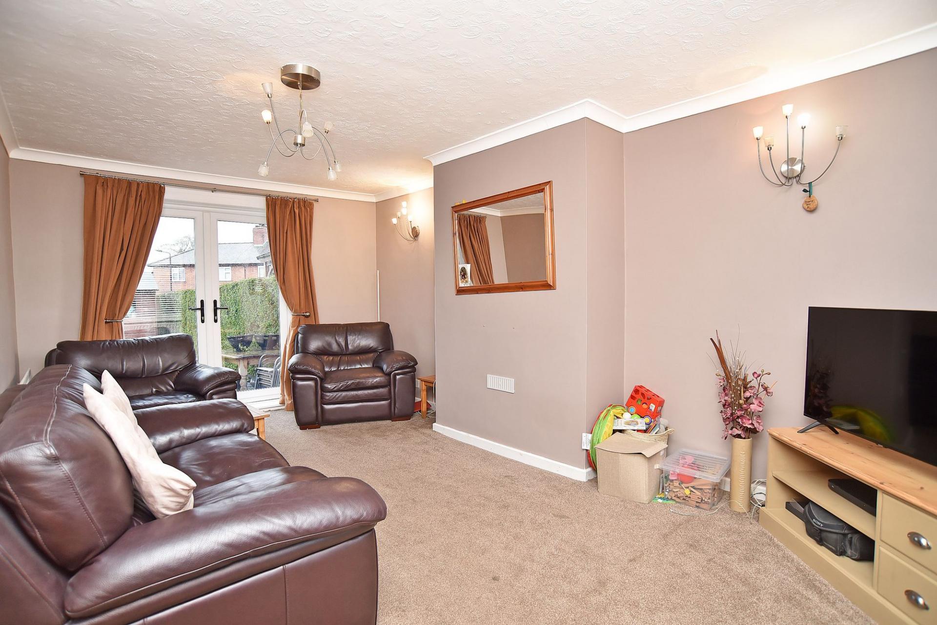 Spacious room with window to front elevation and patio doors out to enclosed rear garden. Window to front elevation