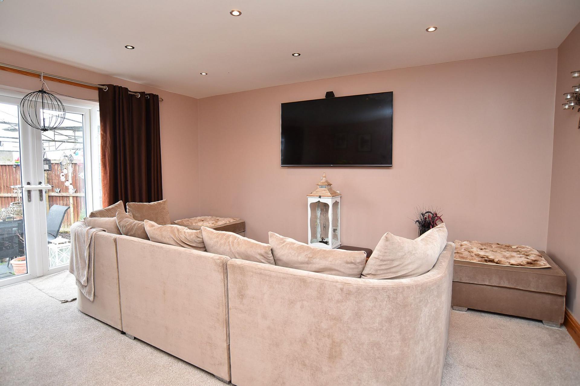 Double-glazed windows to front and rear. Laminate wood flooring, two central heating radiators and coved ceiling. Feature fireplace with stone hearth and wood-burning stove.