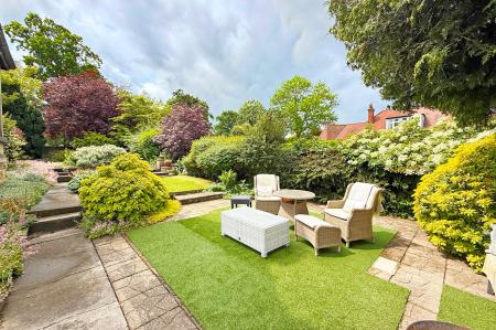 OUTSIDE A generous drive provides ample parking and leads to the large triple garage block with WC. The property occupies a particularly generous plot and is surrounded by attractive gardens with mature well-stocked borders, various sitting areas and lawns.