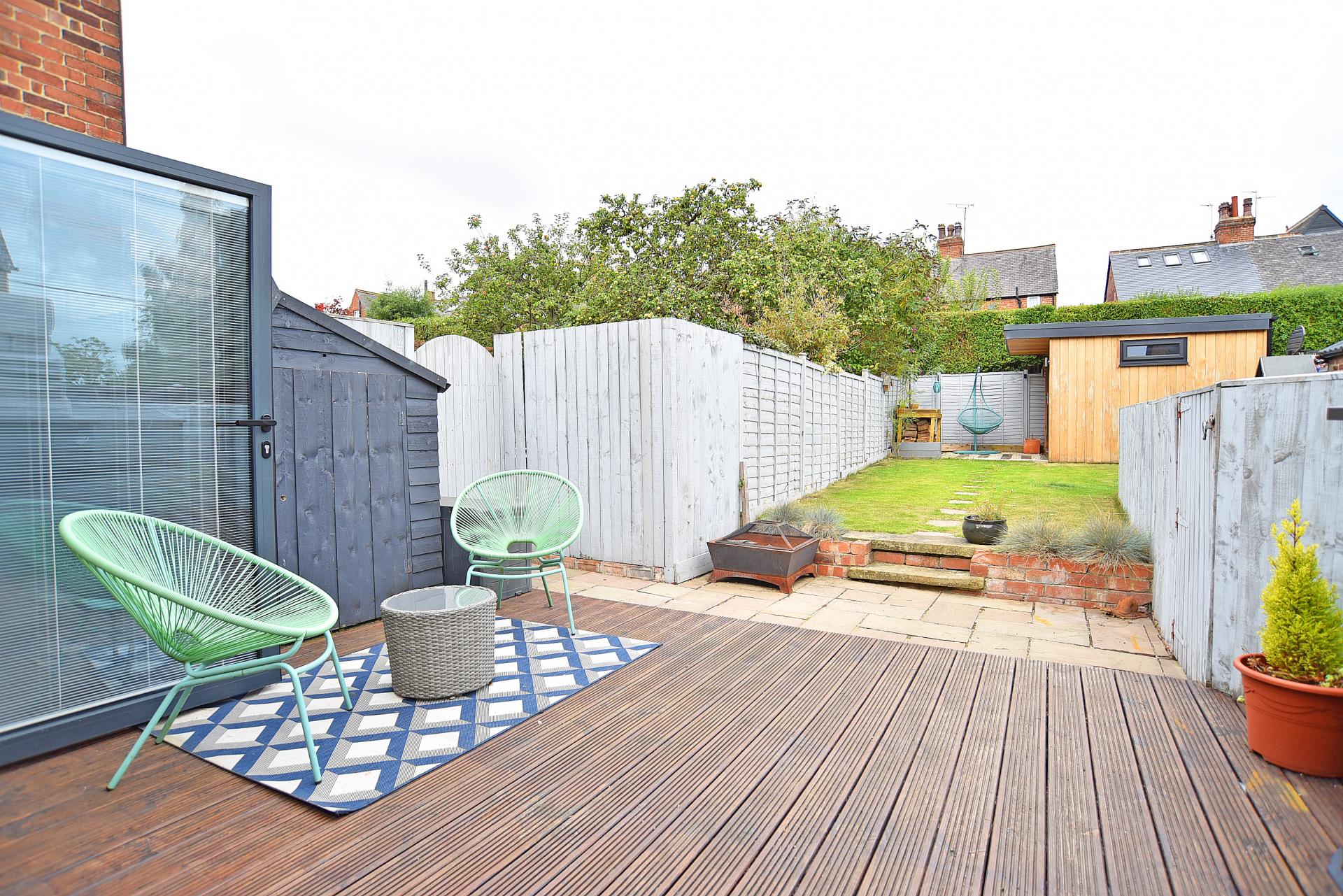 OUTSIDE A shared drive provides access to the rear of the property where there is off-road parking. The property benefits from an attractive and good-sized rear garden with lawn and patio. There is an electric vehicle charge point.