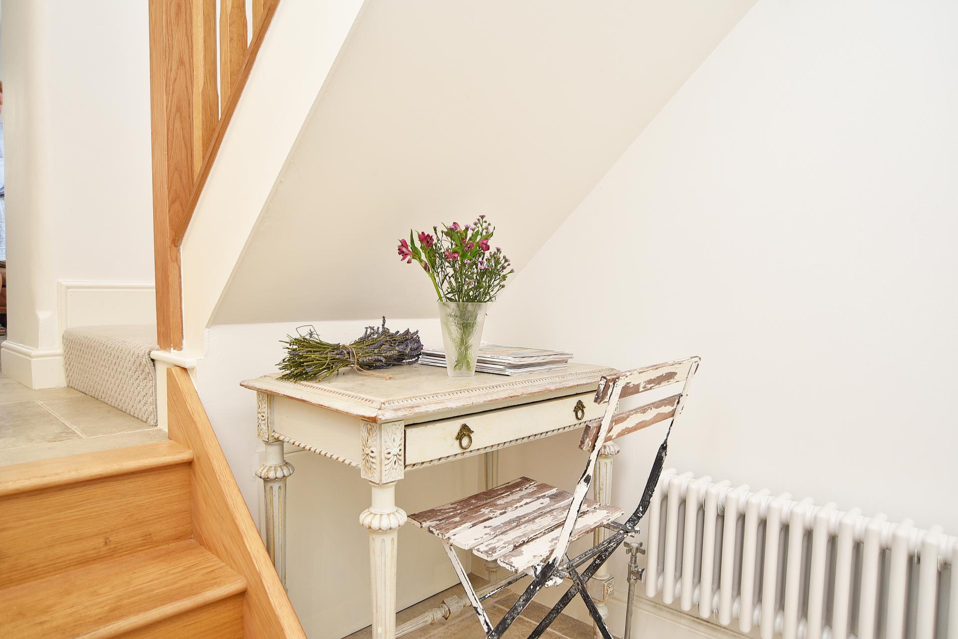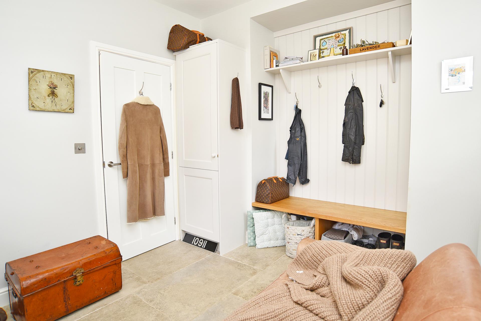 Spacious split-level reception hall with feature customised oak steps. Office / boot room that could be utilised as a further bedroom. With porcelain tiled floors, utility cupboards, wall mounted cloaks hanging and seating. Main bay-fronted living room with dual aspects. Stunning hand-built breakfast kitchen with integrated appliances, white quartz work surfaces over and heated porcelain tiled floors. Bespoke luxurious shower room finished with hand-carved Italian marble.