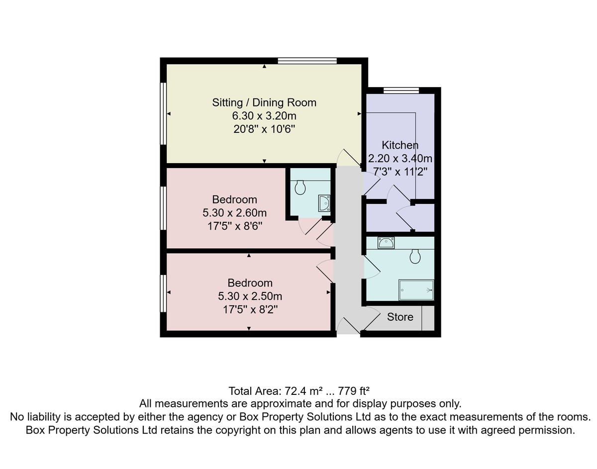 A beautifully presented two-bedroom first-floor apartment with the advantage of a garage and additional storeroom. The spacious accommodation comprises two double bedrooms, a light and airy living / dining room, a modern kitchen, shower room and en-suite WC. The apartment is presented to a good standard and has oak doors.