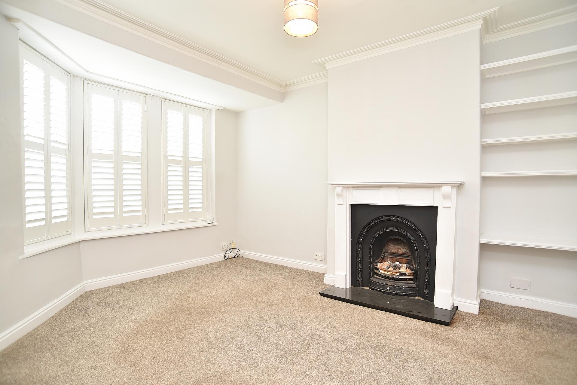 A spacious reception room with bay window to the front. Attractive period fireplace with living-flame gas fire.