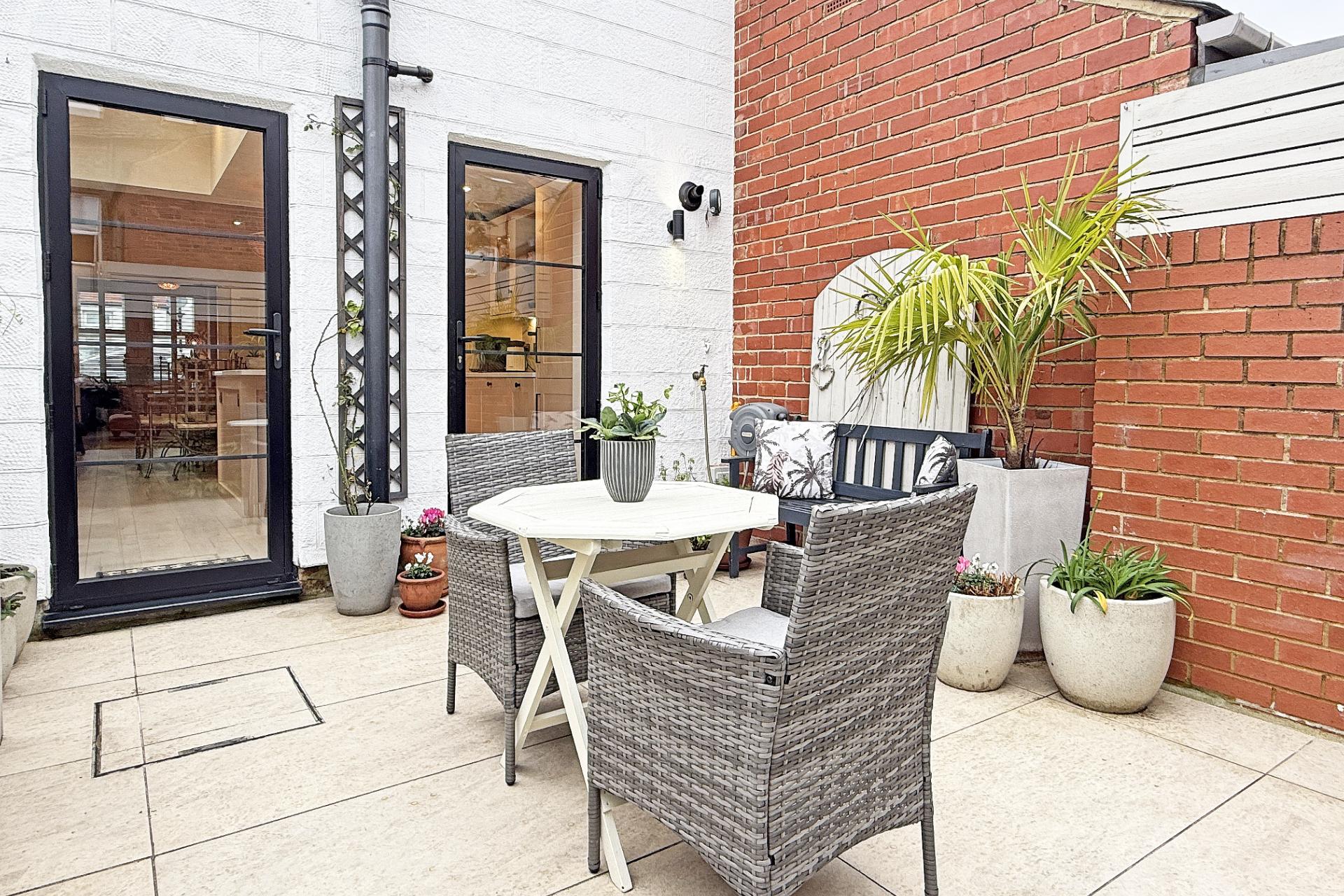 OUTSIDE The front of the house comprises of Cotswold stone landscaping with Victorian-style tiled path leading to the front door. To the rear of the property there is an attractive tiled courtyard garden enjoying a south facing aspect, providing excellent private outdoor sitting and entertainment space. Mediterranean and architectural planting to the rear beds, along with a living-roof garden on the bespoke bin/garden store provide year round interest. Outdoor lighting, electric power, and outdoor tap. On-street parking is available at the front and rear of the property.