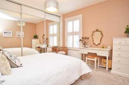 A large double bedroom with window to the front, fitted shutters and bespoke Sharps fitted wardrobes and automatic lighting.