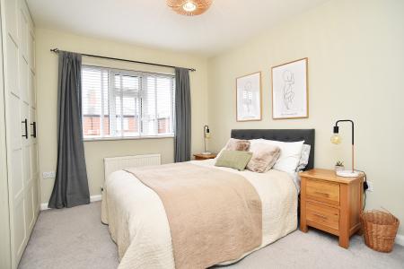 To the first floor, the property continues to impress. The principal bedroom is a spacious and beautifully presented double room positioned to the front of the property, offering fitted wardrobes and ample space for further furniture. A second generous double bedroom overlooks the rear garden and provides comfortable accommodation for family or guests. The third bedroom is well proportioned and versatile, ideal as a nursery, home office or single bedroom depending on individual requirements.