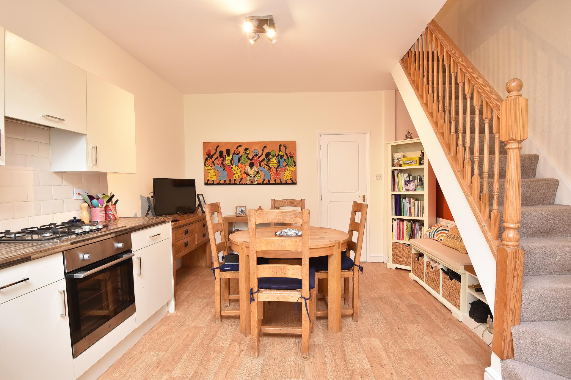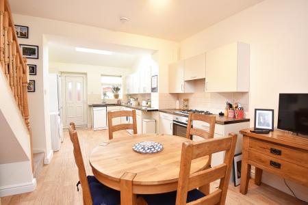With space for dining area and door leading to the garden. The kitchen comprises a range of fitted units with gas hob, integrated oven and space for appliances.