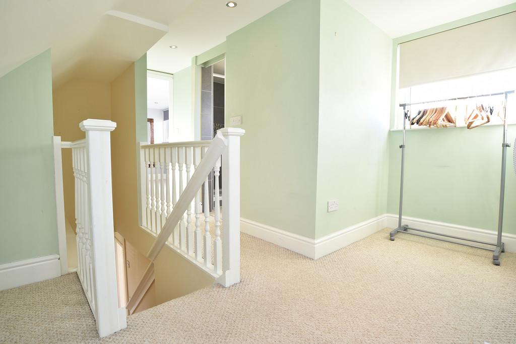 Double-glazed window to rear, central heating radiator and access to front eaves storage areas.