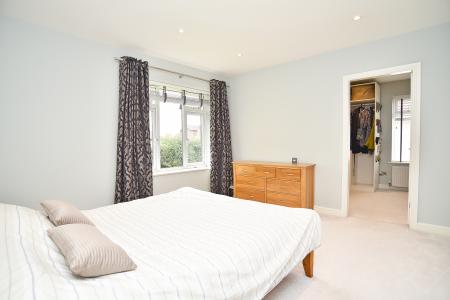 A double bedroom with adjoining dressing room with fitted wardrobes.