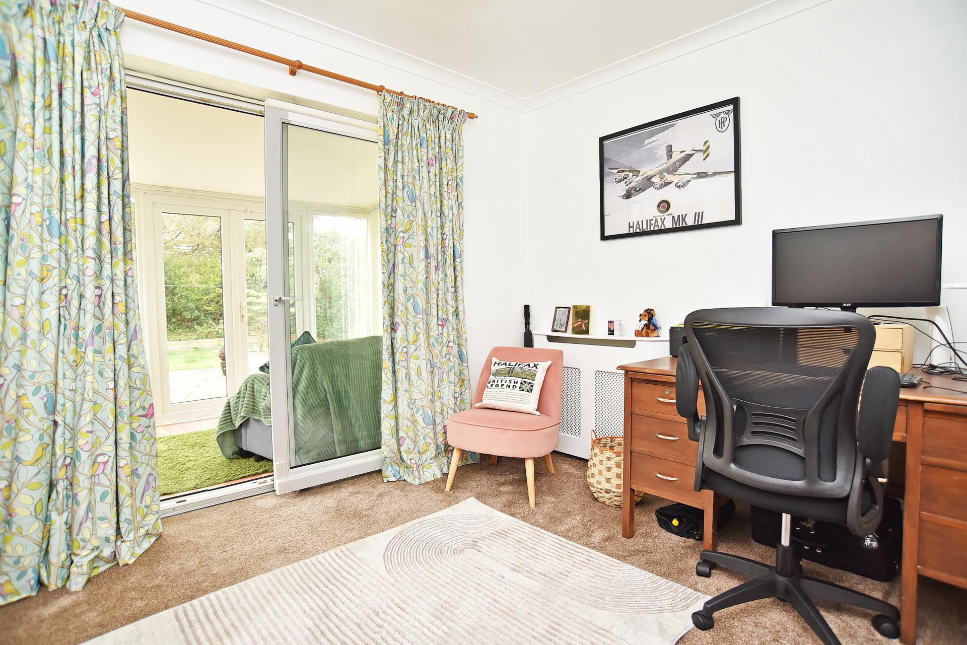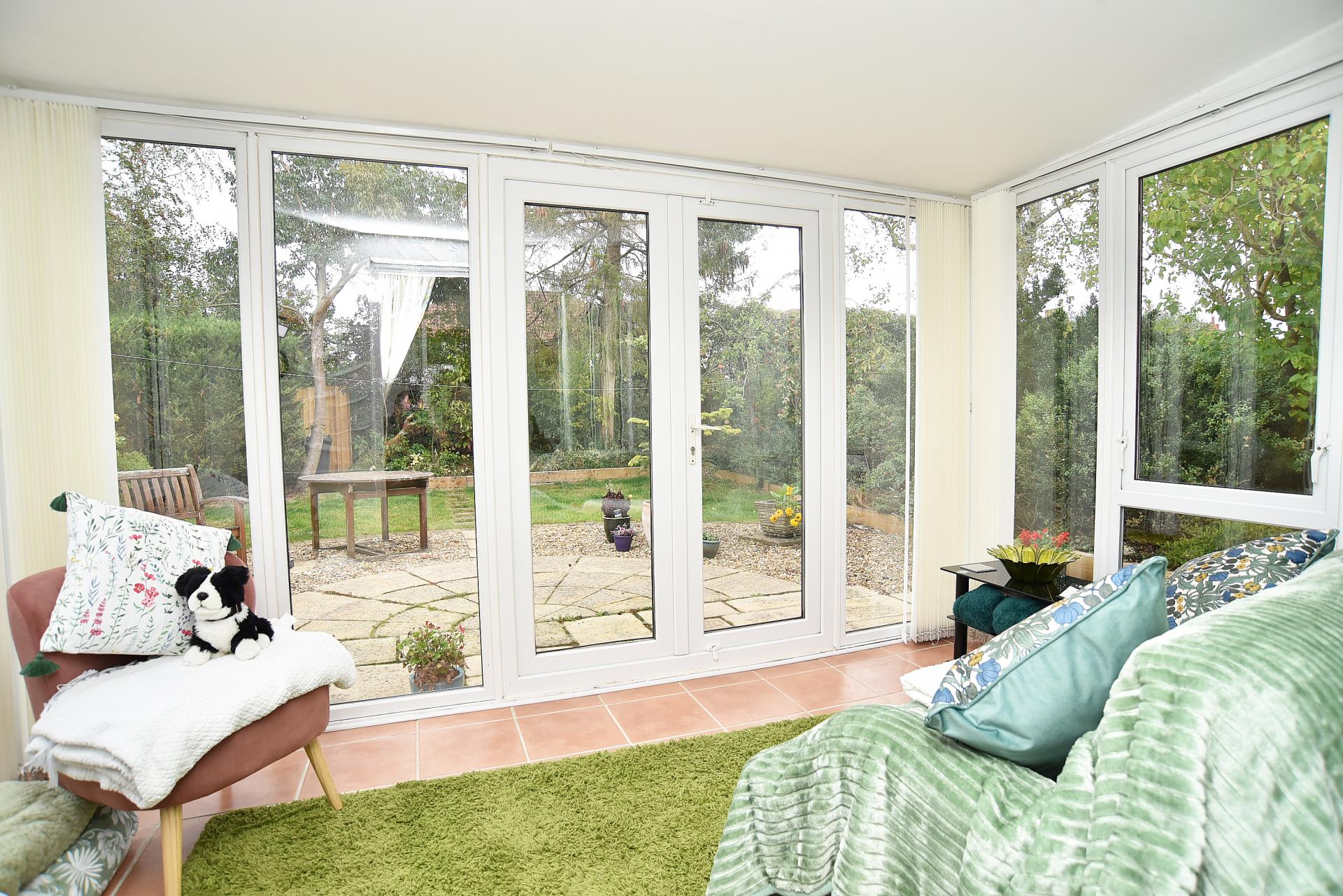 Providing a further sitting area with windows and glazed doors overlooking the garden.
