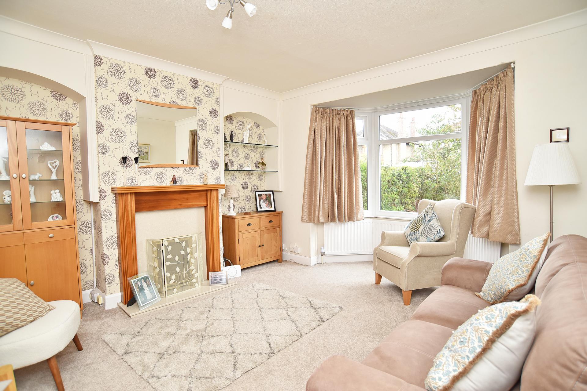 A spacious reception room with bay window to front. Fireplace with gas fire.