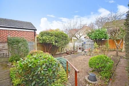 OUTSIDE   A driveway provides parking and lead to a detached single garage. Good-sized rear garden with planted borders, sitting areas and greenhouse.