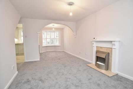 A spacious open-plan reception room with a sitting and dining area, electric fire. Windows to front and rear with fitted shutters. Under stairs cupboard.
