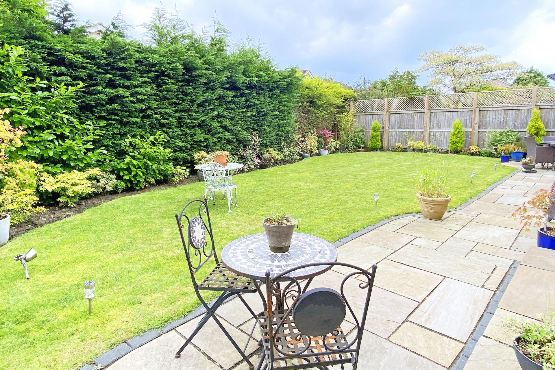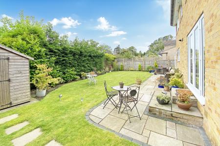 OUTSIDE A driveway provides parking and leads to a good-sized garage. To the rear of the property. There is a lawned garden with well-stocked, planted borders and paved sitting area.