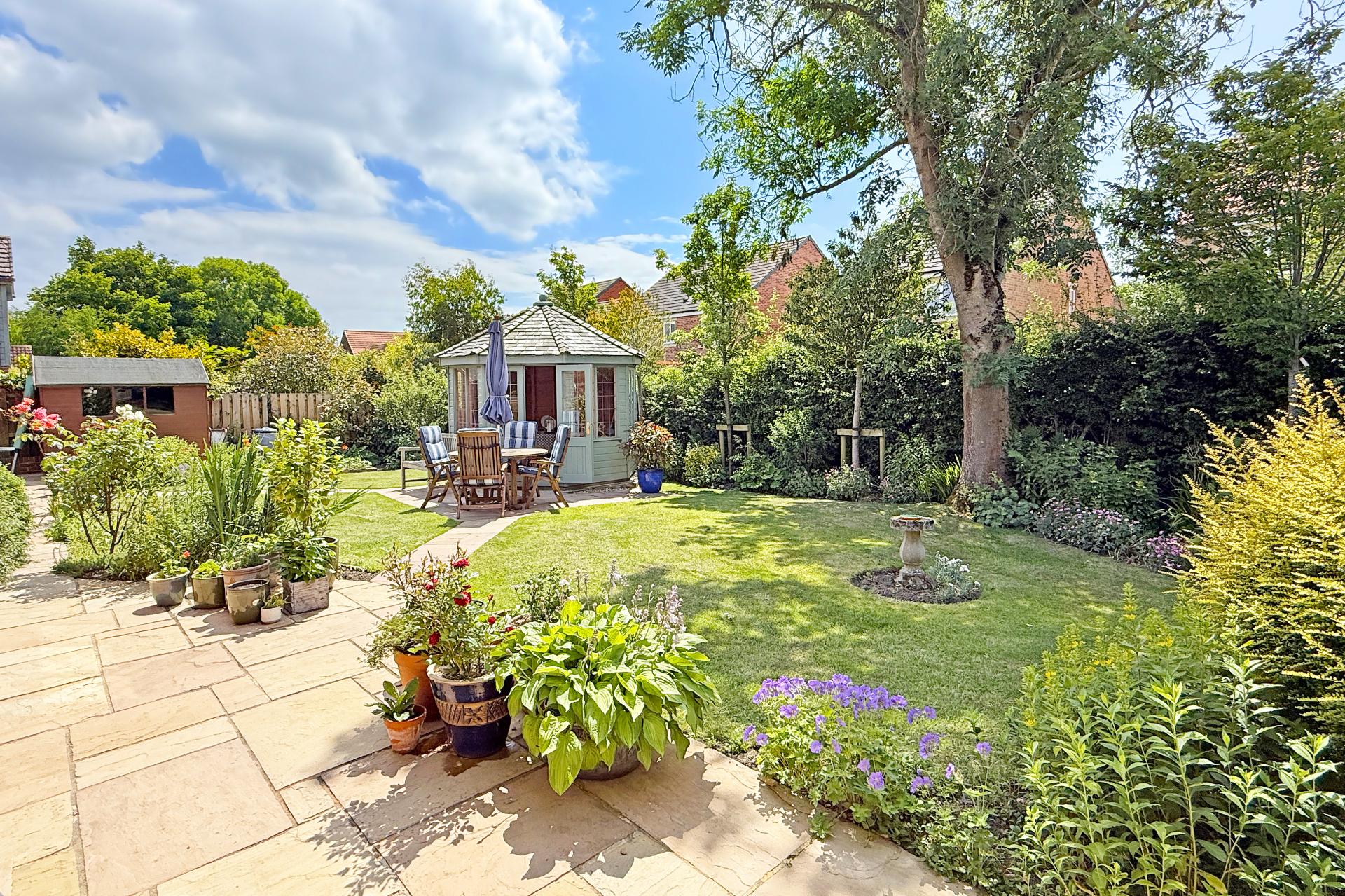 OUTSIDE A driveway provides ample off-road parking, with electric vehicle charging point, and leads to an integral double garage with light, power and electric doors with storage space above. Attractive front garden with lawn and planted borders. To the rear of the property, there is a good-sized garden with lawn, paved sitting areas, well-stocked planted borders, summerhouse and shed.