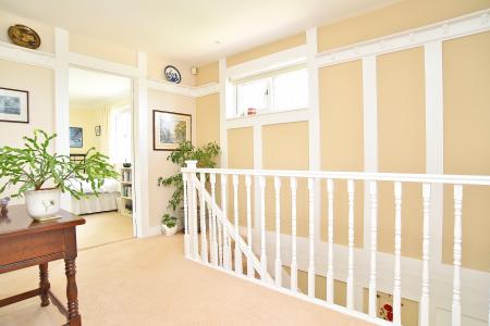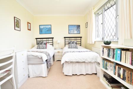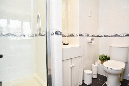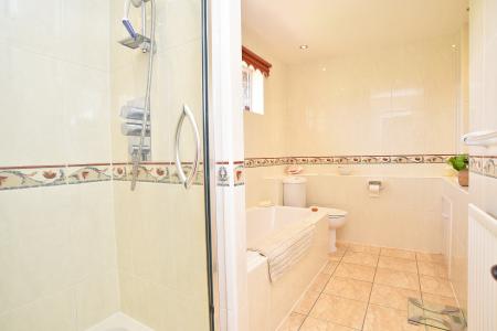 There are four good-sized bedrooms on the first floor, including the main bedroom with fitted wardrobes and en-suite shower room. Small safe.