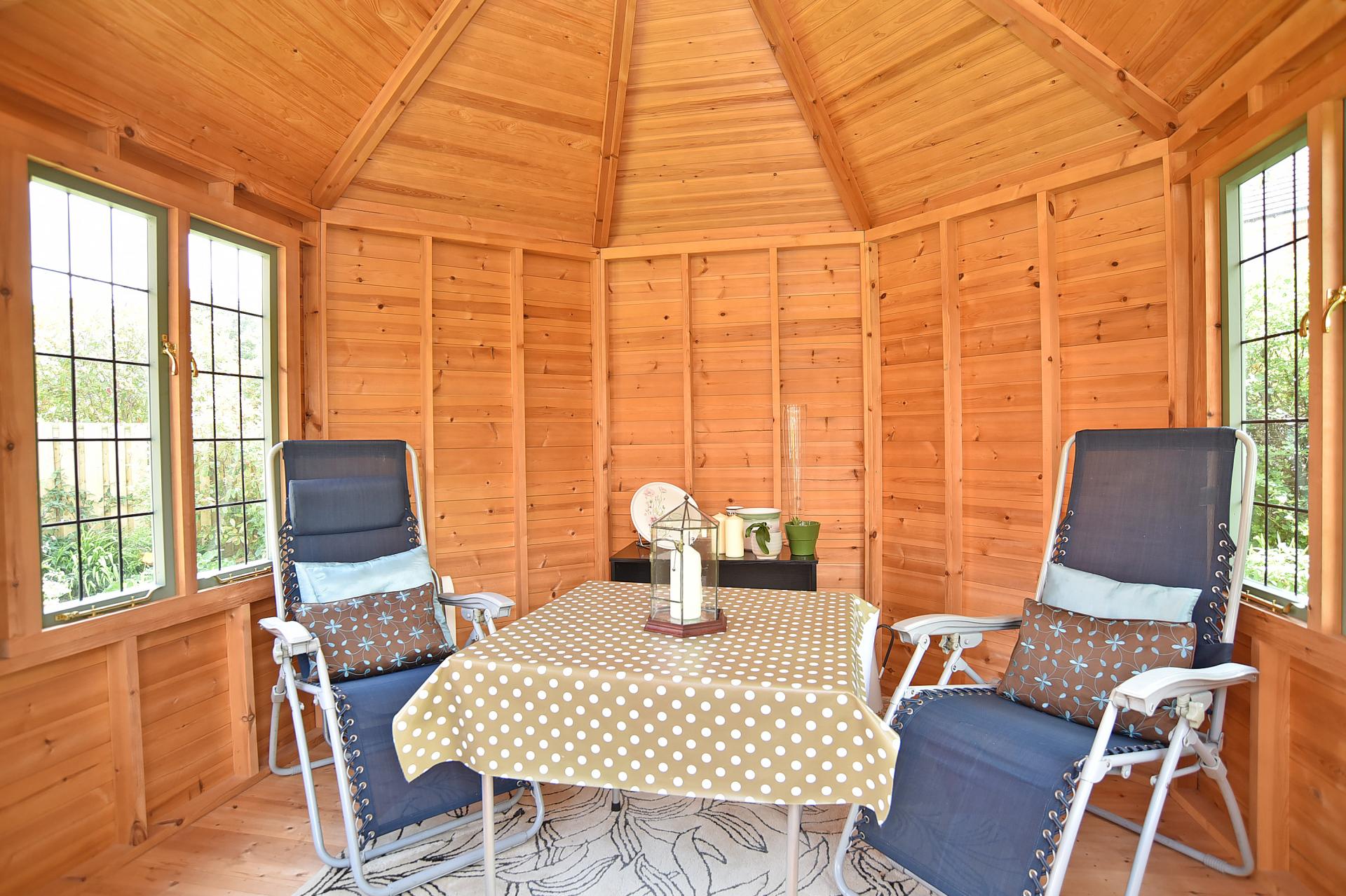 The property occupies a generous plot, having good-sized, attractive south-facing gardens with lawn, planted borders and modern summerhouse.